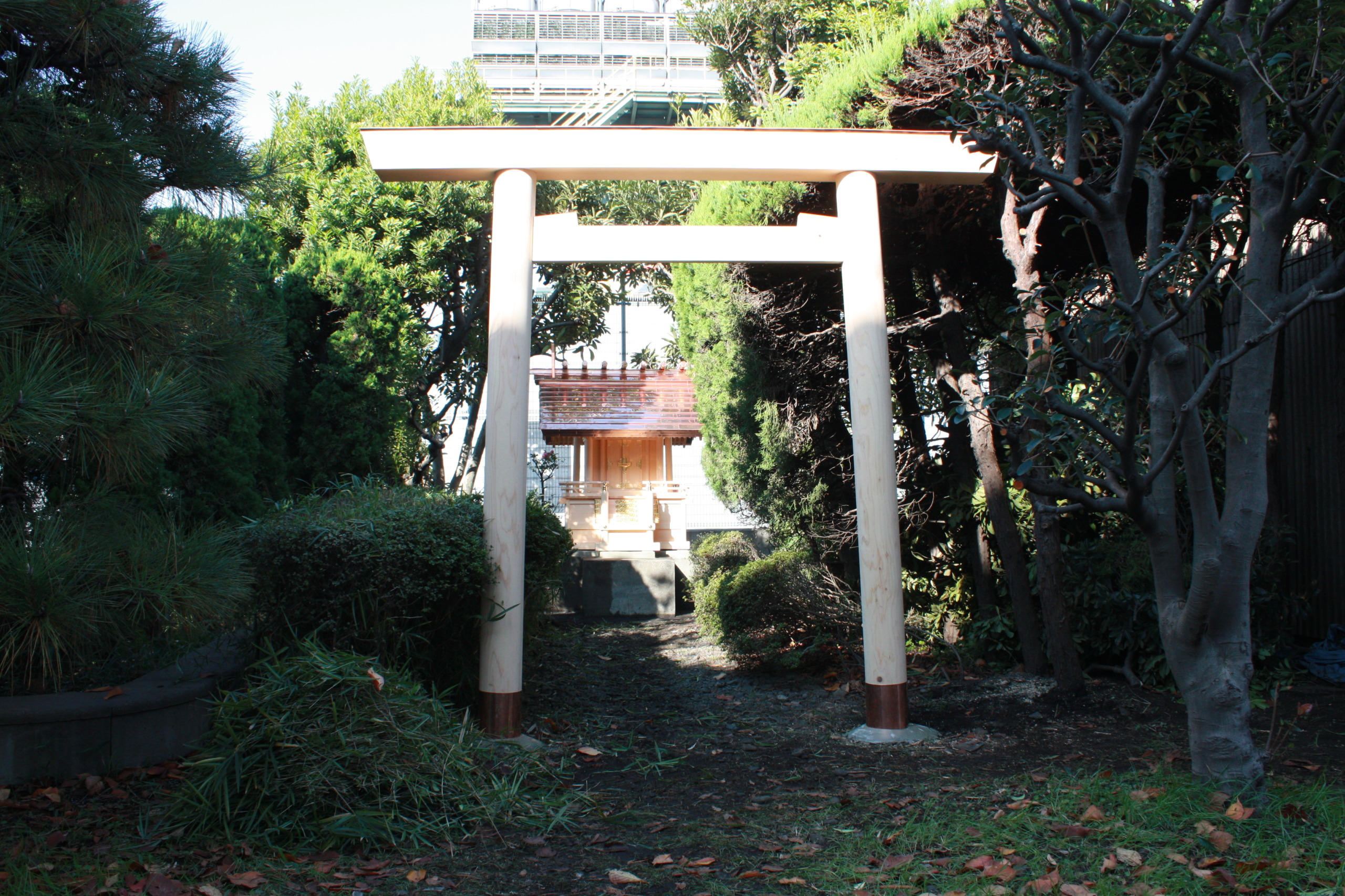 鳥居:民材、笠木銅板葺き